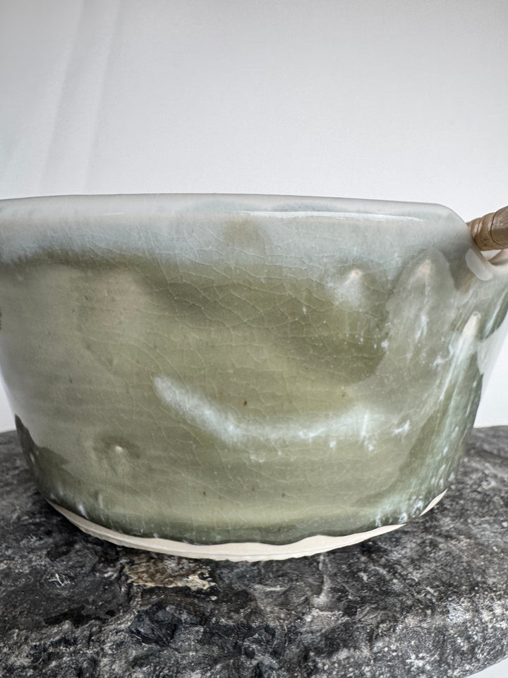 White Studio Glossy Glaze on white porcelain and ocean foam green.