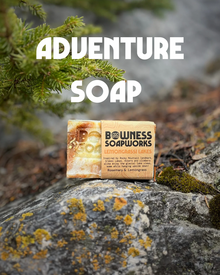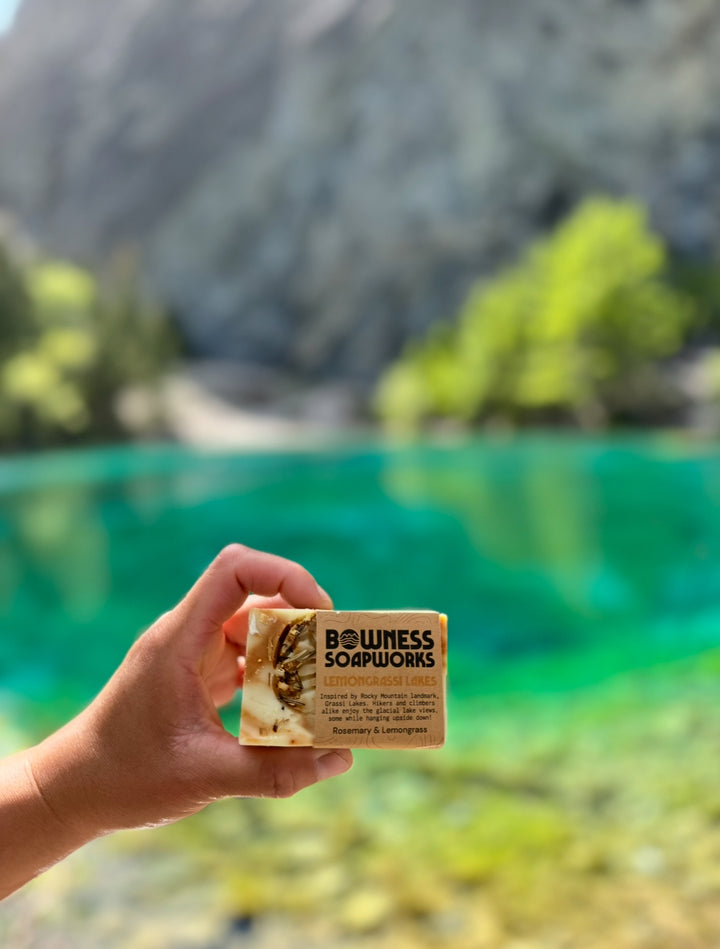 Inspired by Rocky Mountain landmark, Grassi Lakes. Hikers and climbers alike enjoy the glacial lake views, some while hanging upside down.