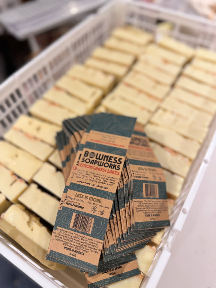 Ingredients: Olive Oil (Olea Europaea), CoconutOil (Cocos Nucifera), Water, Glycerin, 100% Rosemary Essential Oil (Rosmarinus), Turmeric, 100% Lemongrass Essential Oil, Dried Rosemary and Dried Lemongrass.